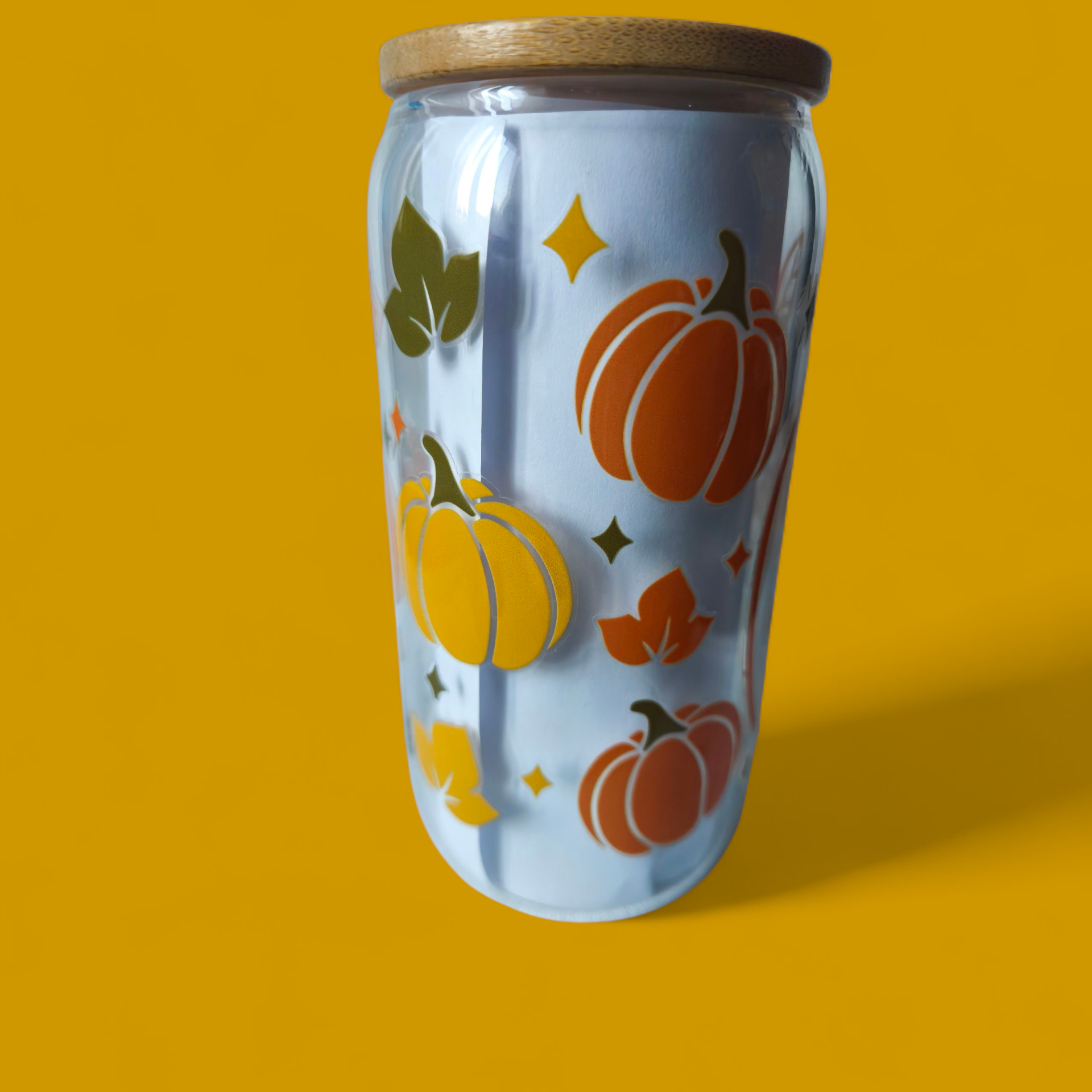Sklenice je zdobená originálním polepem s motivem dýní a nápisem “Thick thighs & fall vibes”, který jí dodává jedinečný a hravý vzhled. Každý kus je originál a vždy jen jeden!